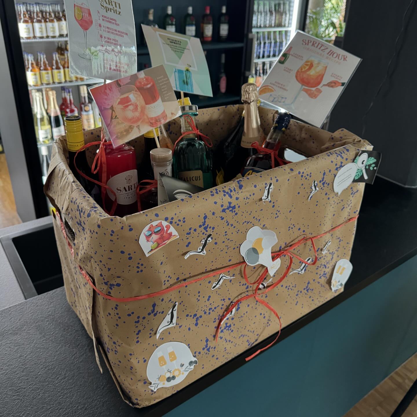 Guten Freunden gibt man ein Küsschen. Oder, wenn man sie wie in unserem Fall wirklich gut kennt, eine Auswahl an leckeren Drinks. 1.000 Dank an @projekt_k_ms für diesen unerwarteten und wirklich mehr als liebevoll kuratierten Präsentkorb – you know how we do! Wir freuen uns riesig, euch am Freitag an unserer (von euch gebauten) Agenturbar begrüßen zu dürfen und endlich mal alle gemeinsam auf das Leben anzustoßen! Cheers 🍹🥃🍸🥂❤️🎉